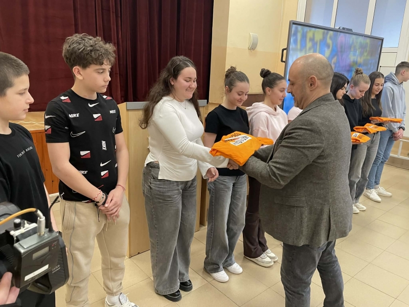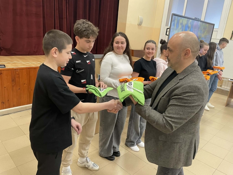 Директорът на СУ „Христо Ботев“-Враца връчи тениски и отличителни знаци на учениците, станали младши посланици на Европейския парламент.