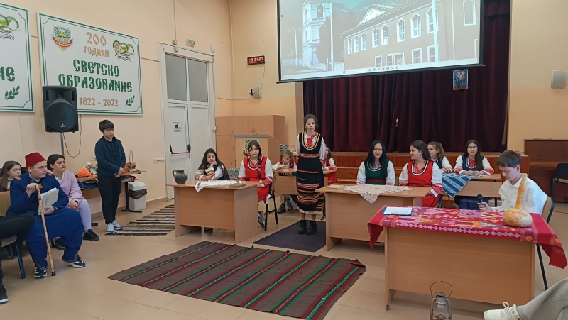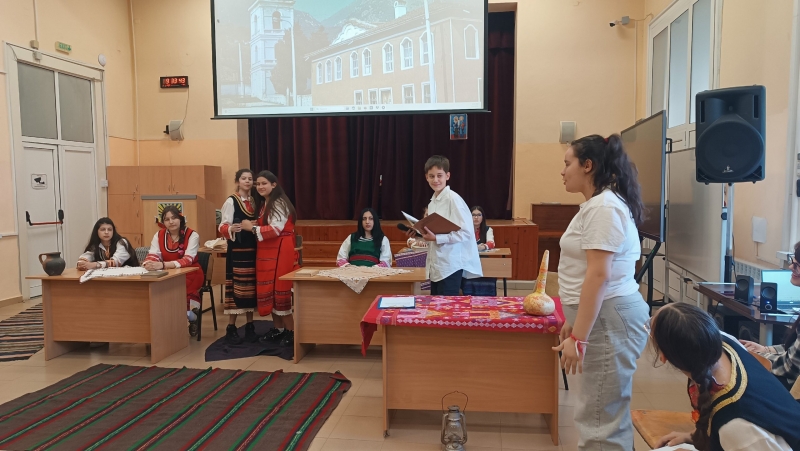 Учениците от 7.а и 7.в клас ни върнаха повече от век назад – право в класната стая на Вазовата Бяла черква. Под вещото ръководство на г-жа Цветомила Димитрова (учител в ГЦОУД и преподавател по история), децата пресъздадоха „Радини вълнения“.