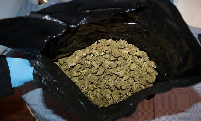 На следващия ден, в условията на неотложност, било извършено претърсване в обитаван от 28-годишния мъж апартамент. Там разследващите открили и иззели електронна везна и два плика, съдържащи общо 1080 грама зелена суха листна маса. Тревата реагирала на канабис при наркотеста.