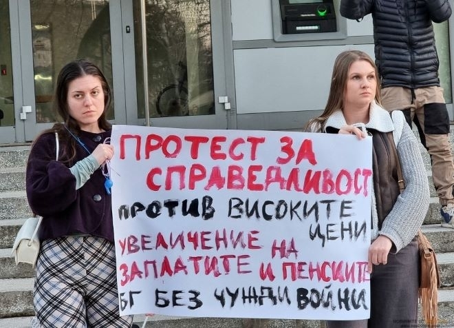 Участниците носеха плакати с надписи „Протест за справедливост“, „Против високите цени“, „За увеличение на заплати и пенсии“ и „БГ без чужди войни“.