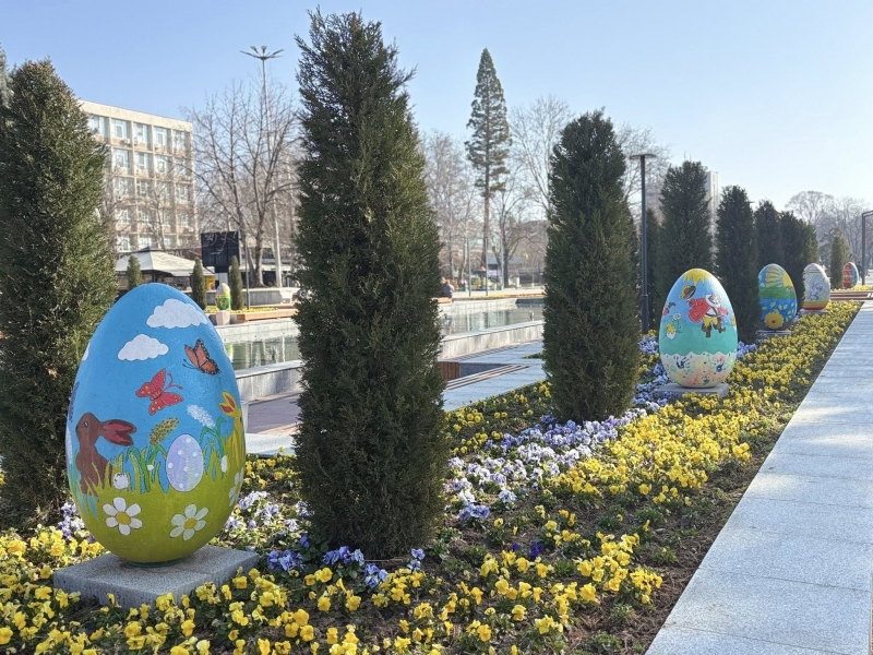 Площад “Жеравица” вече е празнично украсен и носи усещане за пролет, светлина и предстоящите Великденски празници.