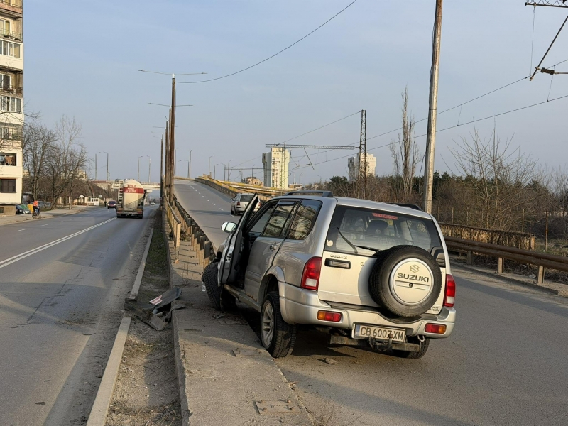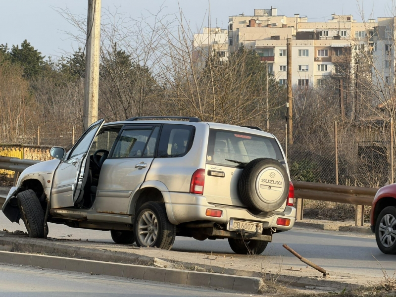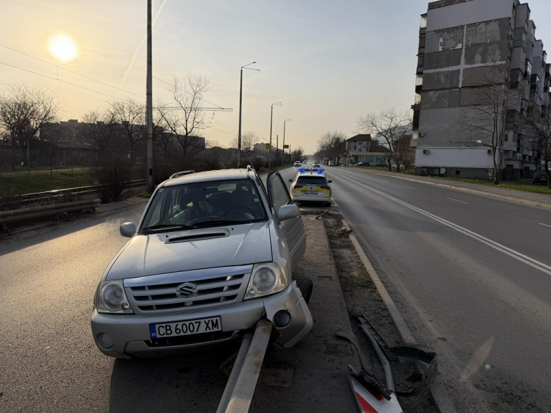 По неясни към момента причини е катастрофирал лек автомобил „Сузуки“ със софийска регистрация. Мъжът се движил от кръговото на „Лукойл“ в посока жк.“Дъбника“, когато изгубил контрол над джипа и той се забил в предпазната мантинела.