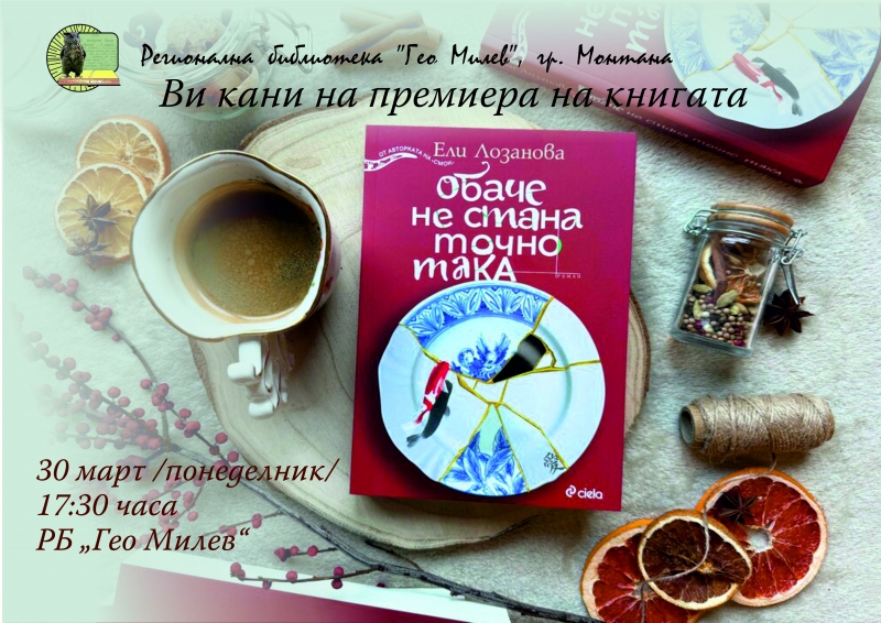 На 30 април от 17:30 ч. Регионална библиотека „Гео Милев“ – Монтана има удоволствието да Ви покани на премиерата на новата книга на Ели Лозанова – „Обаче не стана точно така“.