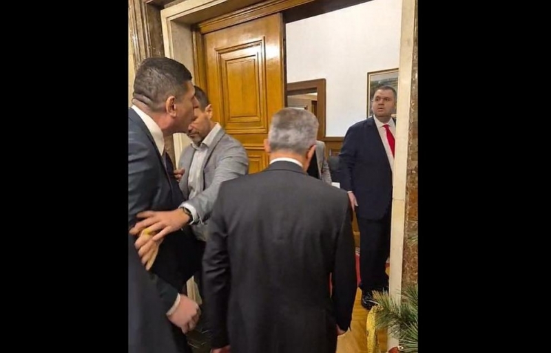 "Звънни му по телефона и го извикай, звънни на Пеевски веднага. Нека най-смелият човек да идва! Тук съм! Давай, давай, давай! Звънни му да идва веднага", посочва още веднъж Мирчев още по-гневен към депутата, който стои на вратата. След няколко минути лидерът на "ДПС-Ново начало" се появява и двамата с Мирчев застават лице в лице. Депутатът от ДБ бута за рамото Пеевски в опит да го спре, а той си извърта рязко ръката и продължава напред.