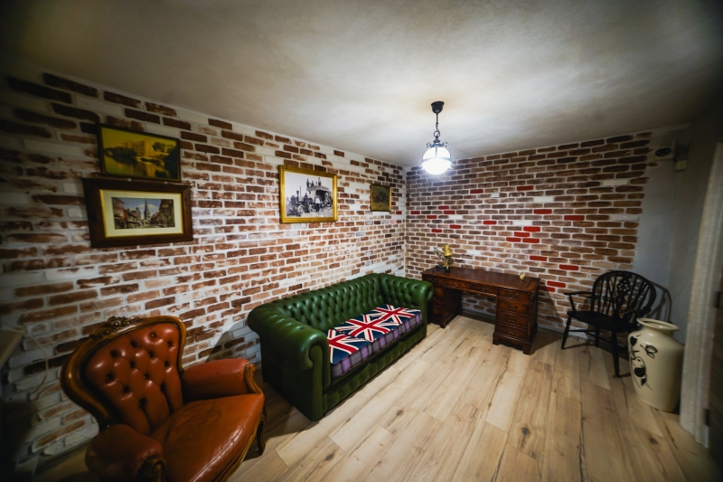 Дизайнът е в индустриален стил с винтидж акценти. Откритите тухли и бетон в емплематичния недовършен ефект на стените, видимите греди и конструкции и грубите елементи от камък и дърво са омекотени от елегантни дивани „Честърфийлд“, мебели с класически дизайн, внос от Англия, и красиви произведения на изкуството. Резултатът е пространство с характер, уют и ясно изразена идентичност – нещо, което досега липсваше във Враца.