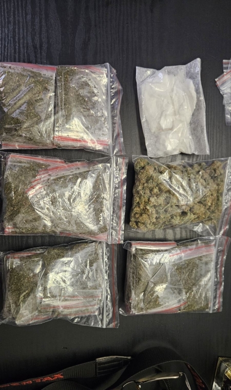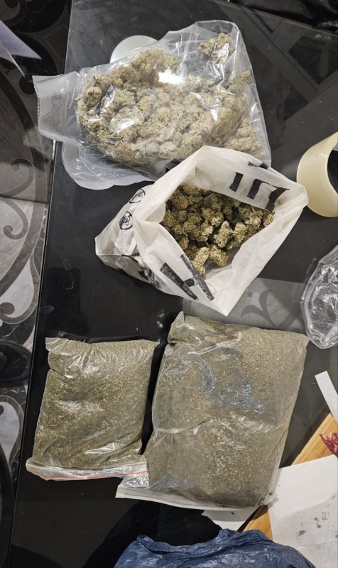 При тараша униформените са намерили и иззели общо 629.51 грама суха листна маса, реагираща на амфетамин, 257.6 грама канабис и 19.10 грама амфетамин. Под диван в една от стаите са открити общо 2 480 къса цигари от марката „Davidoff Gold“ без поставен български акцизен бандерол.