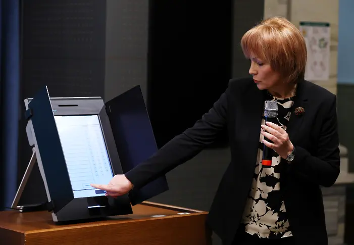 Машинното гласуване остава без промяна. Избирателят поставя карта в устройството, след което се зарежда електронната бюлетина, разпределена на една или две страници според броя на участниците.