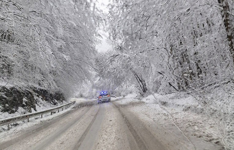 Валежите продължават и към този момент. Пет машини почистват и опесъчават прохода. Въпреки това, пътната настилка все още е заснежена, а в отделни участъци е и заледена.