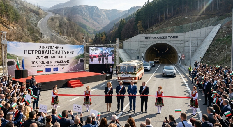 В друго интересно меме виждаме тържествено откриване на Петроханския тунел - проектът, който е станал слоган за не една предизборна кампания през годините. Тунел, който в народното въображение остава почти митологичен. Сега обаче, на мемето, е превърнат в реалност. Лентата е опъната, официалните лица са подредени, има дори и табела: „108 години очакване“. Шегата е добра, защото не е чак толкова далеч от истината, обаче в България повече инфраструктурни идеи не остаряват. Те просто се преминават в категорията „вечни обещания“.