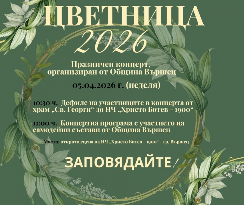 Община Вършец ще отбележи един от най-красивите пролетни празници – Цветница, с тържествен концерт и богата програма, подготвена за жителите и гостите на града.