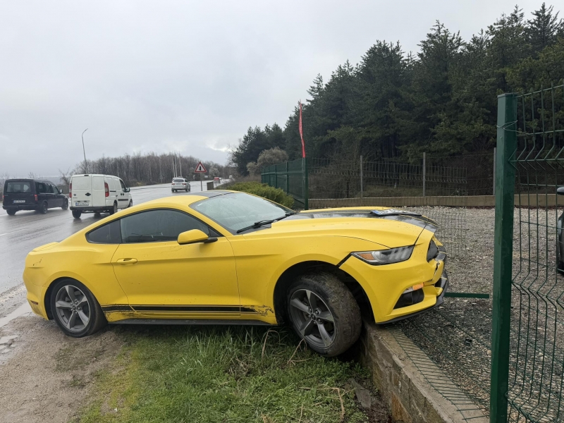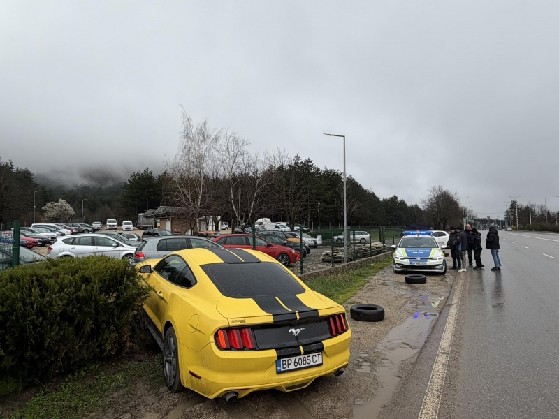 „Мустанг“-ът изхвърчал от пътя вляво, преминавайки през насрещното, и влетял в автокъща от другата страна на шосето, като бутнал част от оградата ѝ.