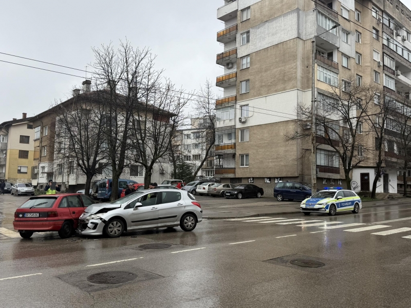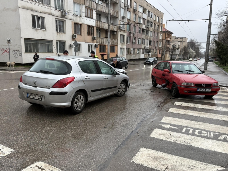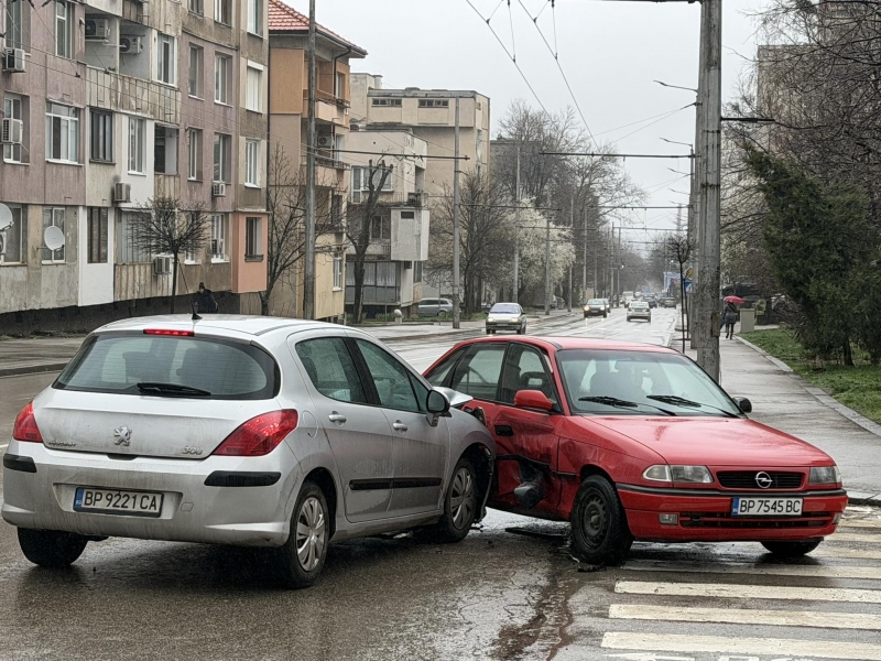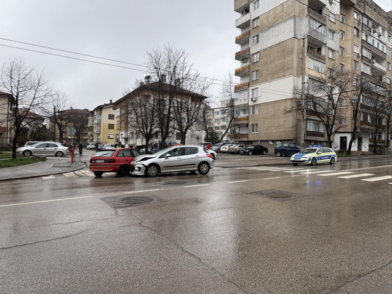 Инцидентът е станал преди минути на ул. „Екзарх Йосиф“, при кръстовището с ул. „Георги Бързашки“. Сблъскали са се „Пежо“ и „Опел“, като и двете коли са с врачански регистрации.