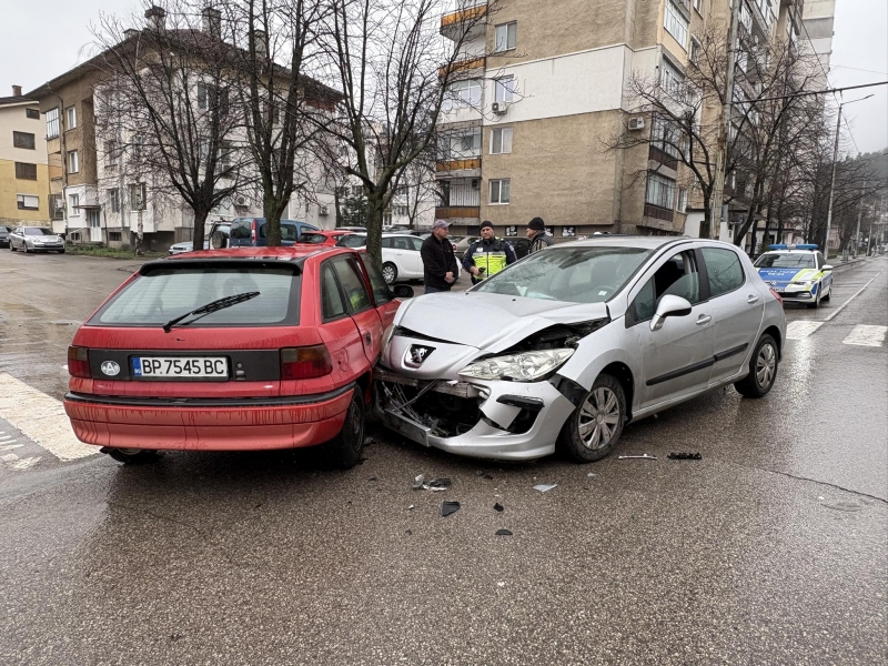 От последните минути! Две коли се удариха на оживена улица във Враца /снимки/