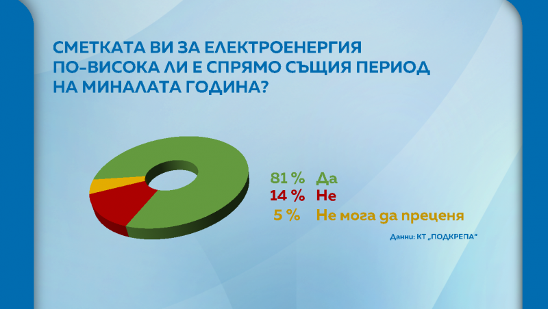 КТ „Подкрепа“ представи резултатите от проведена в периода от 20-и до 31-ви март анкета сред населението във връзка с възникналото напрежение от значителното увеличение на месечните сметки за електроенергия.