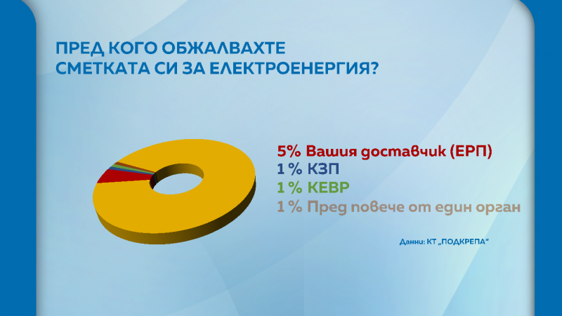 Въпреки отчетеното увеличение, едва 8% от запитаните са подали жалба до своя доставчик или до компетентните държавни институции – КЗП или КЕВР.
