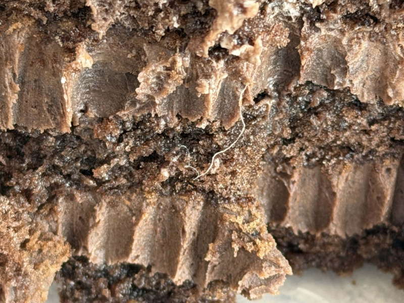 Когато разрязала първото парче, възрастната жена се натъкнала на нещо изключително гнусно. От него се подавал дълг косъм, който бил толкова „впечатляващ“, че нямало как да се подмине. Втрещената жена веднага изхвърлила парчето. Нейните роднини обаче сигнализираха в медията ни, изключително погнусени от случката.
