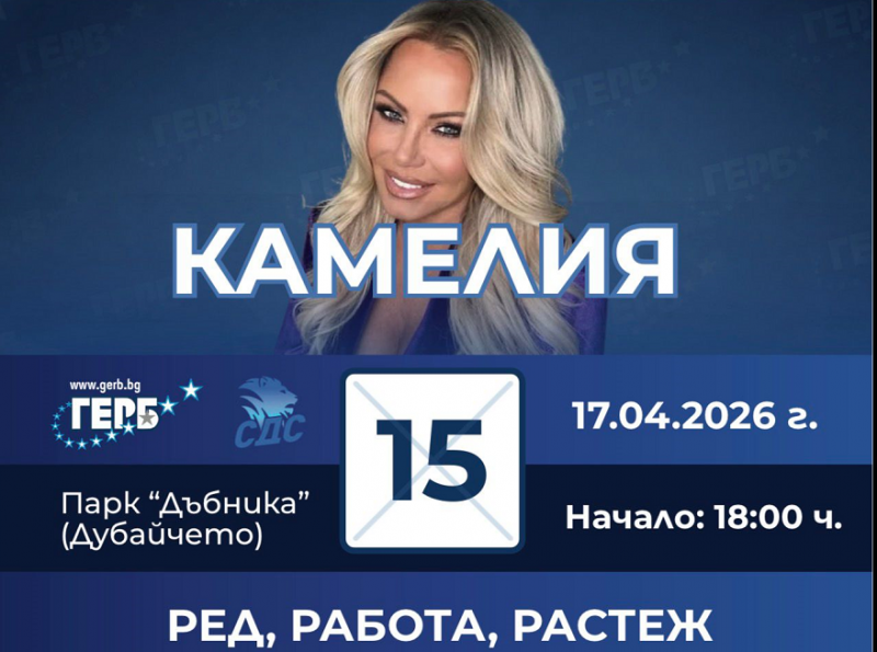 ГЕРБ-СДС закрива предизборната си кампания във Враца с мащабно събитие и концерт на Камелия