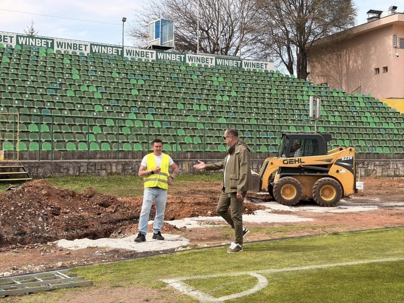 Кметът на Враца Калин Каменов инспектира напредъка по ремонта на лекоатлетическата писта във Враца.