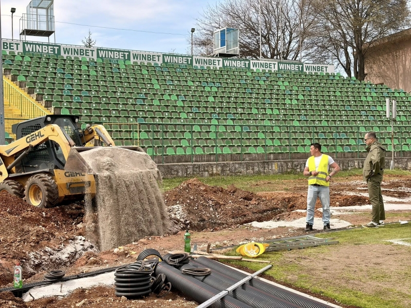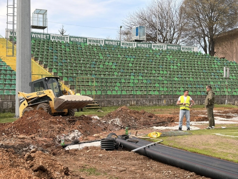 Изградени са системите за линейно отводняване, положени са тръбни канали, монтирани са линейни ограждения. Като в близките дни предстои да бъде премахната съществуващата бетонова настилка. Ще бъдат положени и трошено-каменна основа, асфалтова настилка и тартанова такава.