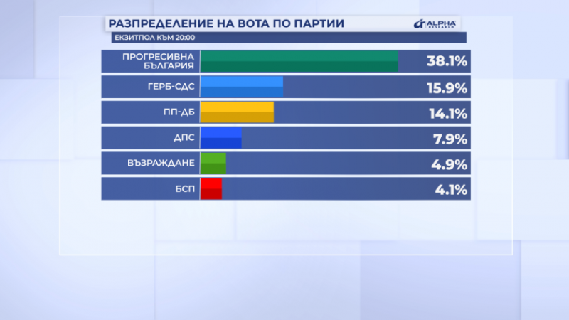 Данните на "Тренд" показват, че "Прогресивна България" са взели 15,7 % от ГЕРБ-СДС, 18,5 % от ПП-ДБ, 10,7 % от "Възраждане", 2,8 % от ДПС, 11,3 % от БСП-ОЛ, 3,3 % от АПС, 4,7 % от ИТН, 3,1% от МЕЧ и 2,1 % от "Величие".