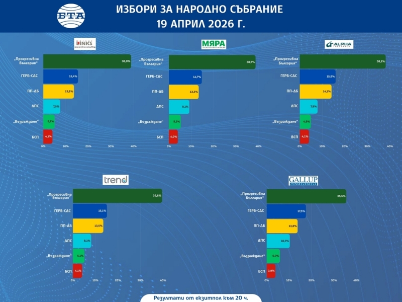 Коалицията „Продължаваме промяната – Демократична България“ (ПП-ДБ) се очаква да заеме трето място с около 14%. Предизборната кампания беше доминирана от опасенията за инфлацията и корупцията, които Радев обещава да изкорени, добави агенцията.