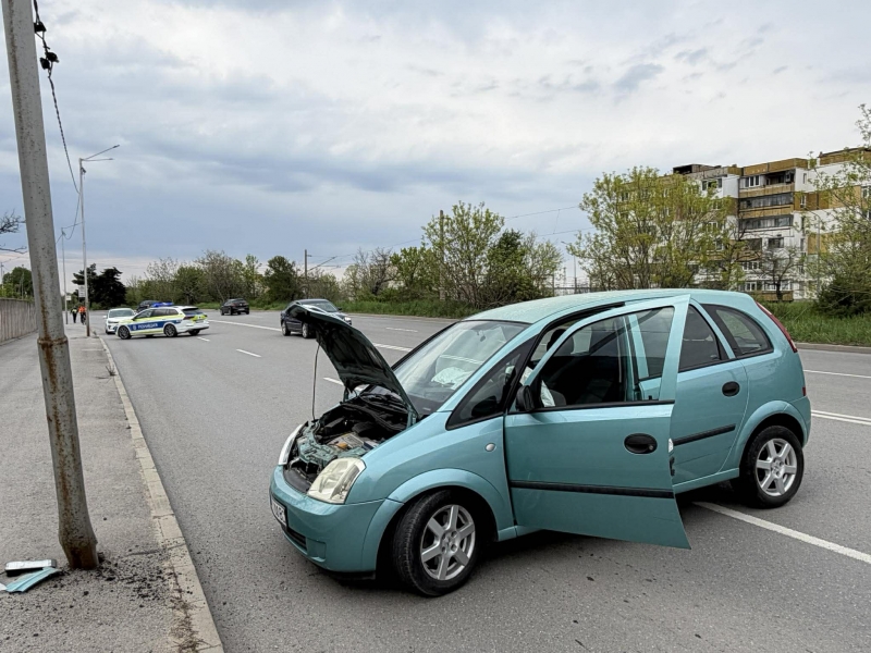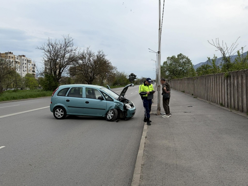 Лек автомобил „Опел“, шофиран от възрастен мъж, се е забил в стълб под военното поделение.