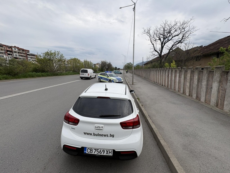 На местопроизшествието има екип на полицията, който документира случая. По шосето пък има множество разпилени части от колата.