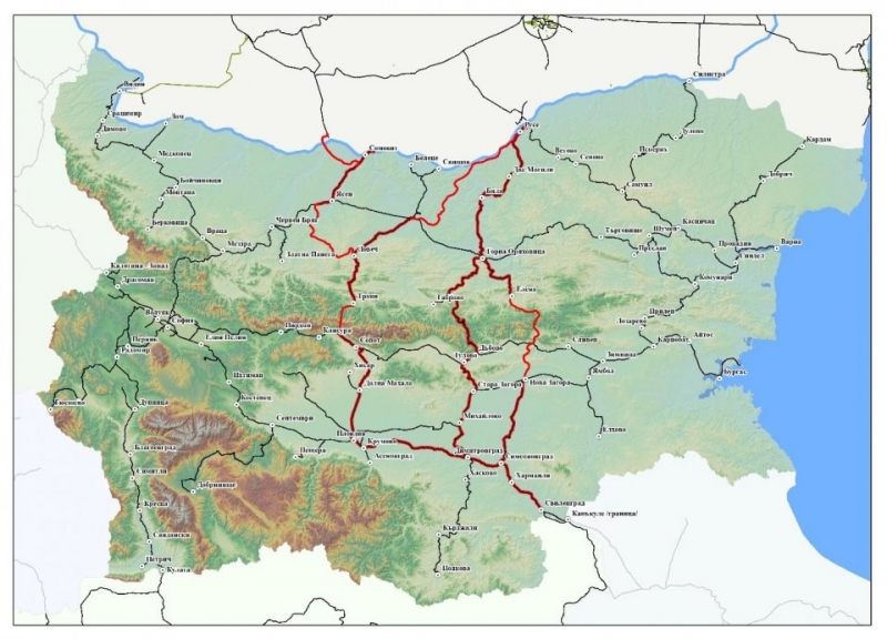 1. Русе – Горна Оряховица- Велико Търново – Дъбово – Тулово – Стара Загора – Михайлово – Димитровград – Симеоновград – Свиленград – граница с Република Гърция;