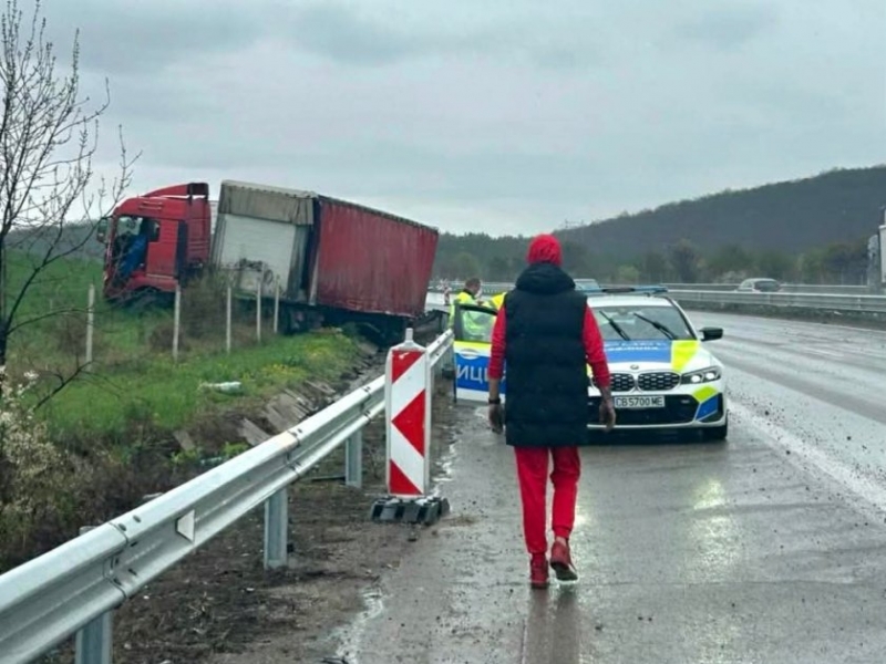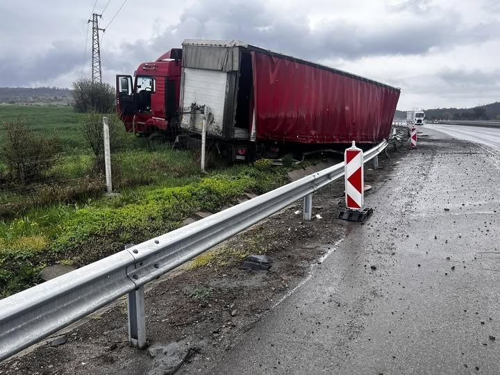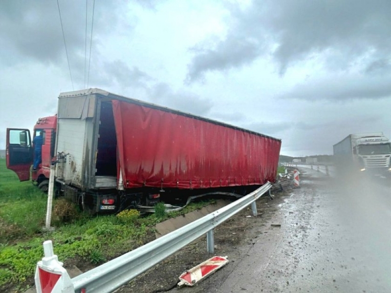 По неясни към момента причини, тежкотоварната машина е излязла вдясно по посока на движението, свалила е около 400 метра от мантинелата и ограда с бетонни колове и се е спряла в полето.