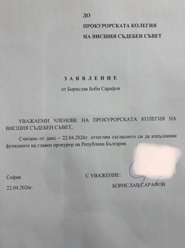 Извънредно! Борислав Сарафов подаде оставка