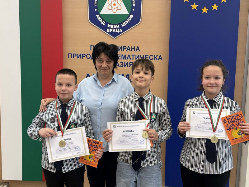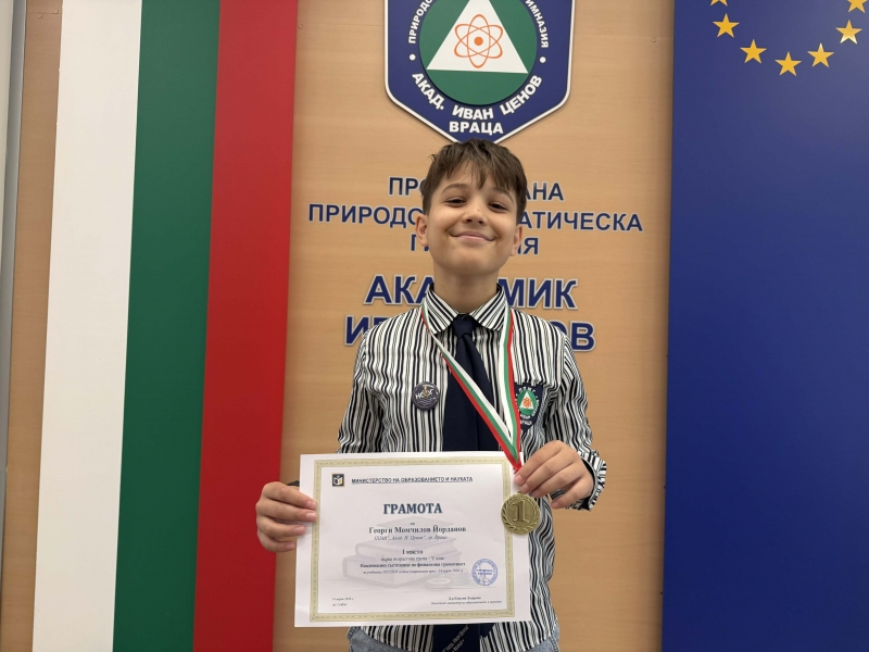 Трима петокласници от Профилираната природо-математическа гимназия спечелиха първо място на Националния кръг на състезанието по „Финансова грамотност“, който се проведе в София.