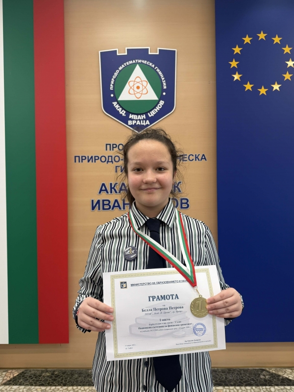 Кристиян Петров, Белла Петрова и Георги Йорданов постигнаха максимален резултат от 30 точки и заслужено заеха челната позиция сред 315 участници от цялата страна. Общо 12 ученици от ППМГ „Акад. Иван Ценов“– Враца бяха допуснати до националния кръг на престижното състезание, организирано от Министерството на образованието и науката.