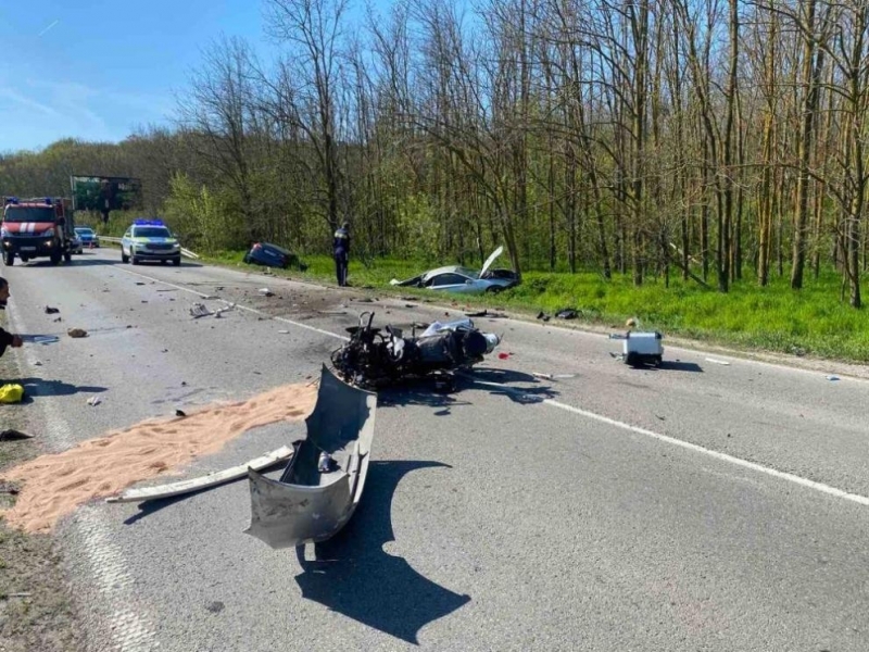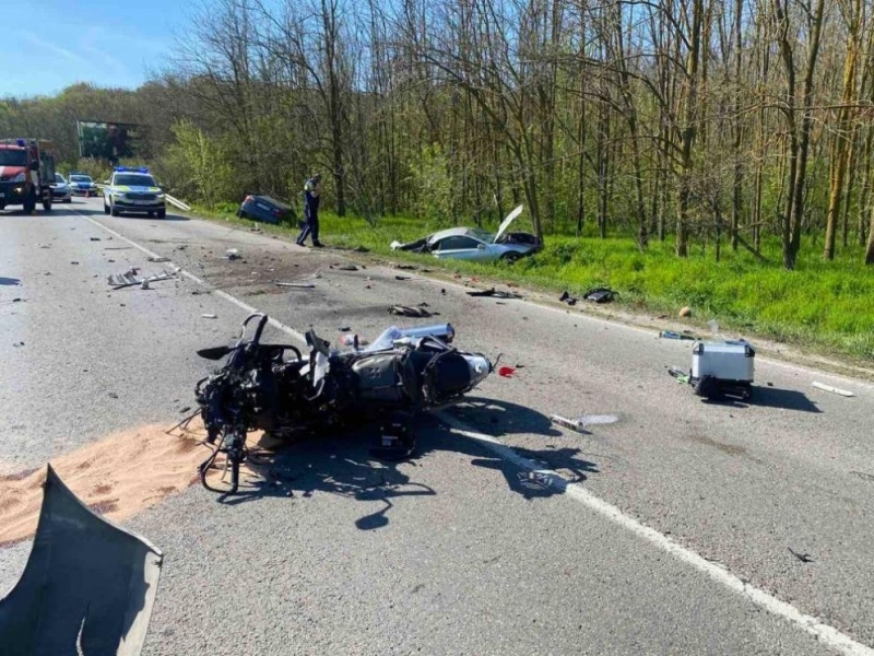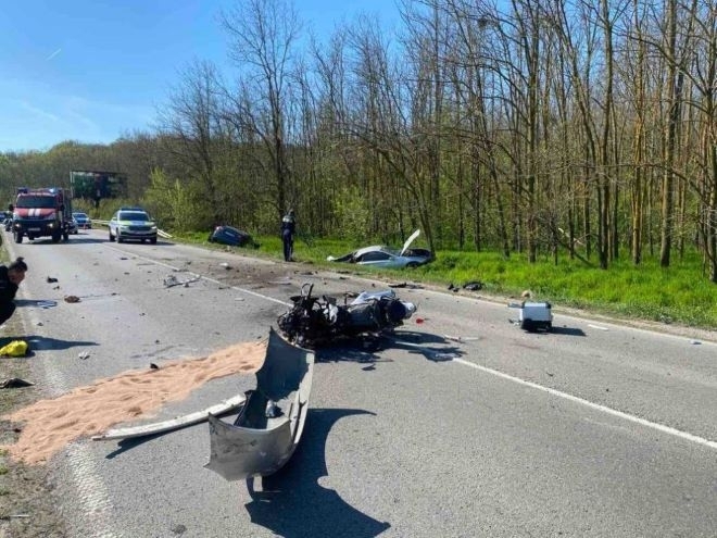 В този момент минават три мотоциклета, пътуващи от Русе към Разград. Първите два успяват да минат покрай автомобила, но третият се удря в него. Загинал е на място румънски моторист.