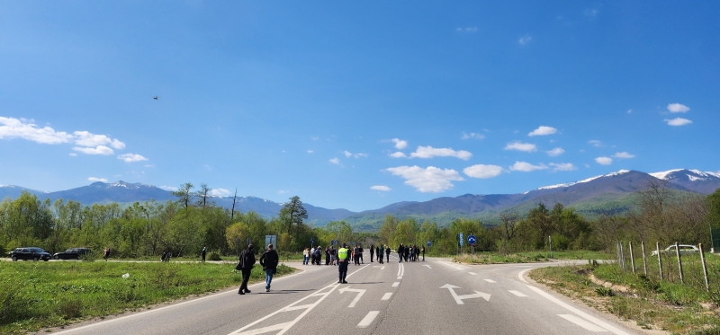 Движението беше спряно още преди мястото на блокадата и така протестиращите нямаха досег с преминаващи по пътя автомобили./БТА
