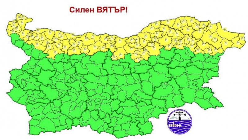 Синоптиците от Националния институт по метеоролия и хидрология (НИМХ) обявяват жълт код за потенциално опасно време. Предупреждението е в сила за областите: