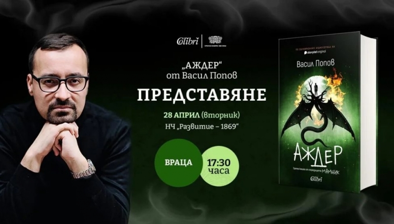 Популярният български писател Васил Попов ще гостува в Враца, където ще представи най-новия си роман „Аждер“.