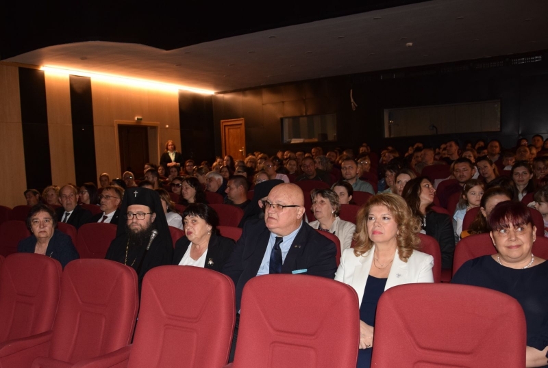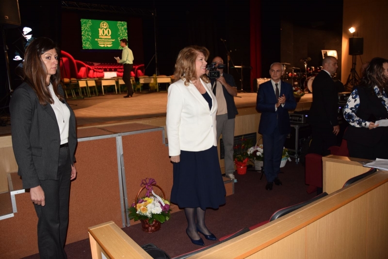 От името на областния управител Иван Иванов тя поднесе поздравителен адрес и кошница с цветя на директора на учебното заведение Росица Димитрова. „Удовлетворен съм от факта, че вече цял век училището утвърждава високи стандарти в образованието и възпитанието, съхранявайки традициите и изграждайки ценности у своите възпитаници“, се посочва в него.